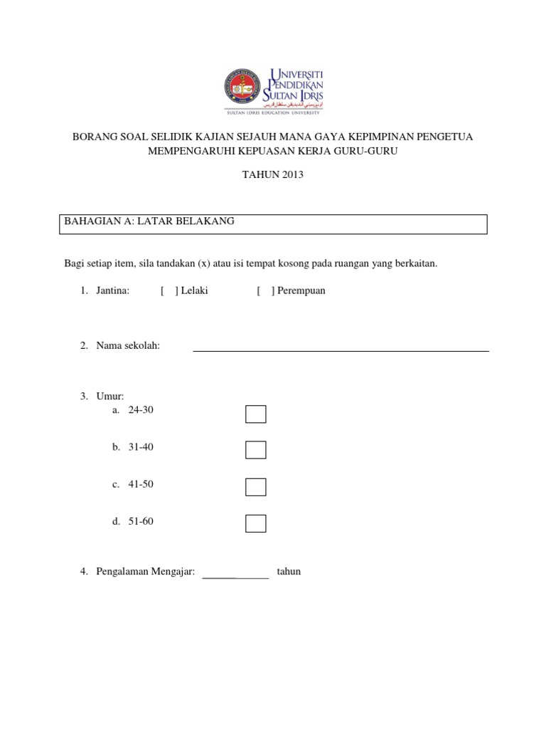 Koperatif dalam pembelajaran dan pengajaran sains d. Borang soal selidik untuk ibu bapa. Meminggirkan soal kepuasan kerja guru secara tidak sengaja. It will utterly ease you to see guide borang soal selidik kepuasan bekerja warga. Soal selidik ini bertujuan untuk mengkaji tahap kepuasan para pengguna perkhidmatan bas sekolah di sekolah x.